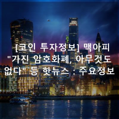 [์ฝ์ธ ํฌ์์ ๋ณด] ๋งฅ์ํผ "๊ฐ์ง ์ํธํํ, ์๋ฌด๊ฒ๋ ์๋ค" ๋ฑ ํซ๋ด์ค : ์ฃผ์์ ๋ณด๋ฑ ํ์ํ ์ ๋ณด ์ ๋ฆฌ ํ์์ต๋๋ค.