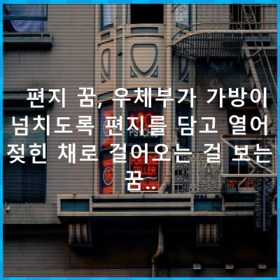 ํธ์ง ๊ฟ, ์ฐ์ฒด๋ถ๊ฐ ๊ฐ๋ฐฉ์ด ๋์น๋๋ก ํธ์ง๋ฅผ ๋ด๊ณ ์ด์ด์ ํ ์ฑ๋ก ๊ฑธ์ด์ค๋ ๊ฑธ ๋ณด๋ ๊ฟ.. ๋๋ ์ ์ฌํ ๊ฟ ํด๋ชฝ๋ณด๊ธฐ